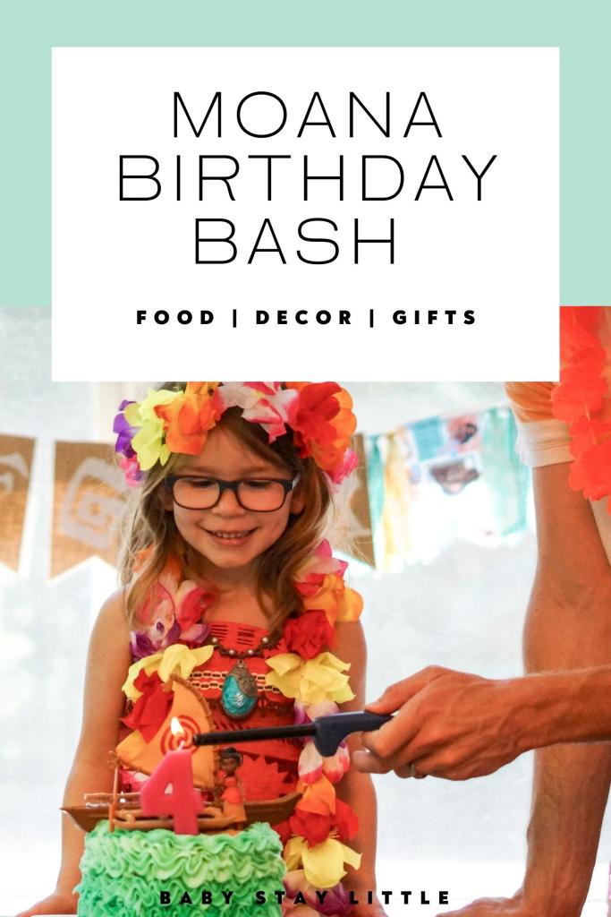 Along with the party itself, the birthday party outfit is a big deal too! If she was to have a Moana birthday party Peyton insisted she need to be Moana. This made gift shopping easy this year! We gifted her the outfit and necklace before her party and they served dual purpose that day (and many days after) completely transforming her into Moana.