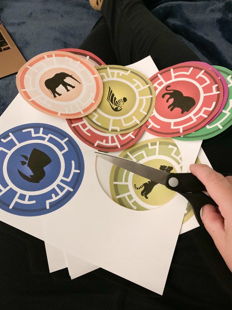 After you have your vests complete its time to make some CREATURE POWER DISCS! Download the printable from PBS or browse the internet for other options. Print on card stock and cut out. Then for durability laminate the discs and cut again. Make sure you have enough laminating sheets and thick ones for extra strength. Boom, creature power discs are complete! In order to have them be useable with the vests attach small velcro pieces to each disc and one opposite piece to the center of the vests.