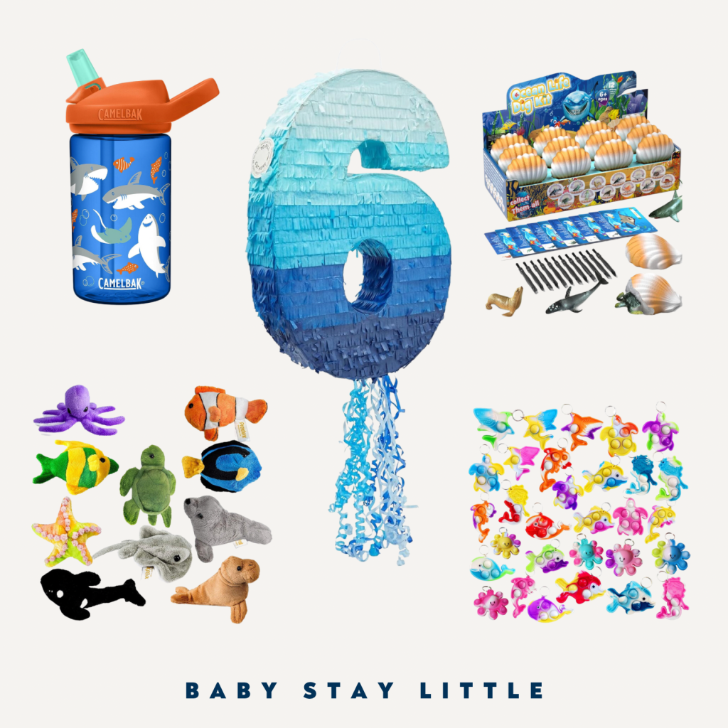 Milo is a HUGE stuffie lover. It’s the only way he gets to have (read: collect) animals, so he has a ton! These adorable mini plush toys had all his favorite sea creatures to give in his bags (and keep some himself). In addition, every kid loves pop its right? These mini ocean animal pop its are a great addition to the bags.