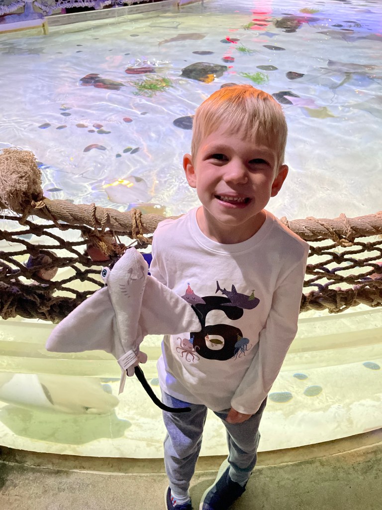 This year was unique for his birthday. We came home from a vacation two days before his birthday, and stayed with my brother in the twin cities. Ever since our trip to the Omaha Zoo, our little animal lover has been obsessed with aquariums. I thought it would be perfect to bring him to the local aquarium near to his cousins home to celebrate together.